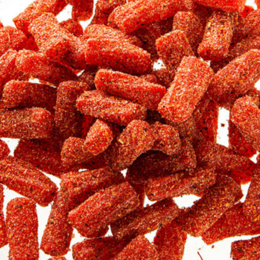 Mini Twizzlers sabor fresa cubiertos de nuestro mix especial de chiles, Nuevos enchilados , no te los puedes perder.